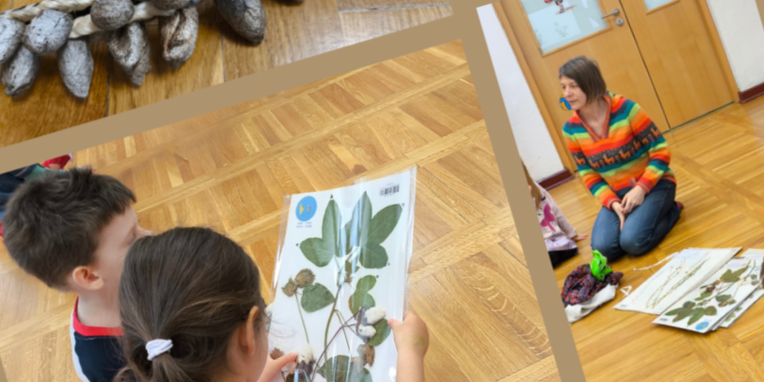 27.03.2025 roku mali wychowankowie Przedszkola nr 286 w Warszawie spotkali się z wyjątkowym gościem – dr Mają Graniszewską, która jest pracownikiem Uniwersytetu Warszawskiego i kierownikiem grupy badawczej odpowiedzialnej za historyczne kolekcje roślin, grzybów i glonów. Dzieci miały okazję zobaczyć jak wygląda zasuszona bawełna oraz len, dotknąć bawełny, materiałów bawełnianych, lnianych oraz jedwabnych. Przedszkolaki same analizowały po co roślina wytwarza puch wokół małego nasionka oraz skąd się bierze jedwab. Największą radość jednak sprawiły instrumenty wykonane z kokonów motyli.